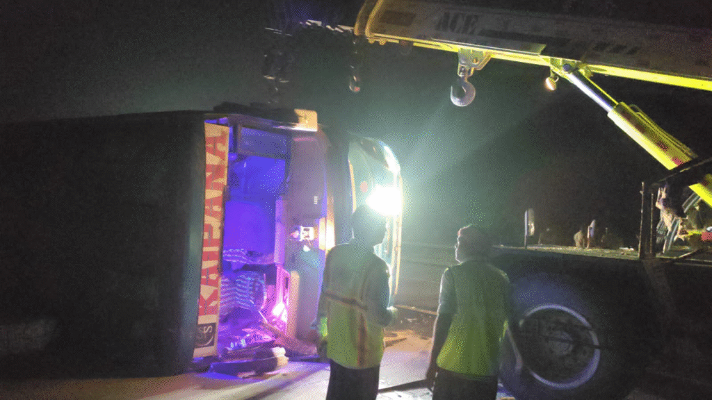 यमुना एक्सप्रेस वे पर बस पलटी, 13 यात्री घायल; चालक की नींद बनी हादसे की वजह