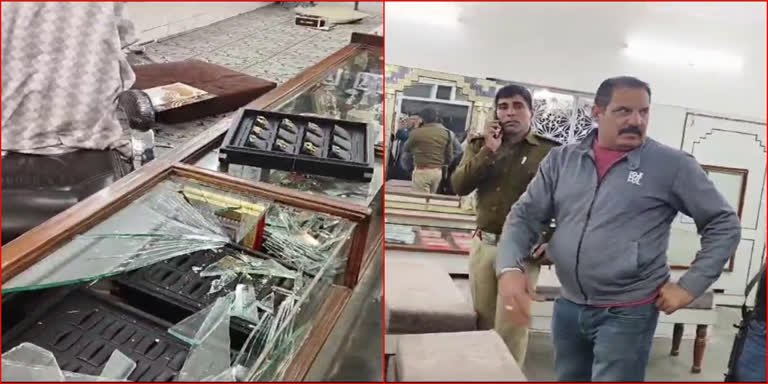 पीड़ित दुकानदार सोमेश गर्ग ने बताया कि दोनों लुटेरे ग्राहक बनकर आए थे और सोने की एक अंगूठी लेकर फरार हो गए। घटना की जानकारी मिलने के बाद जांच अधिकारी वेदपाल ने बताया कि शिकायत दर्ज कर ली गई है और लुटेरों की तलाश की जा रही है। पुलिस ने मौके से छूटी हुई बाइक को जब्त कर लिया है और जल्द ही आरोपियों को पकड़ने की बात कही है।