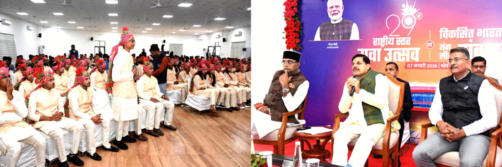 Young Leaders Dialogue 2026: भोपाल, मुख्यमंत्री डॉ. मोहन यादव ने मुख्यमंत्री निवास परिसर में आयोजित कार्यक्रम में “राष्ट्रीय युवा महोत्सव “विकसित भारत यंग लीडर्स डायलॉग 2026” के प्रथम चरण में भाग लेने वाले प्रतिभागियों से संवाद किया। इस अवसर पर मुख्यमंत्री ने युवाओं को राष्ट्र निर्माण की मजबूत आधारशिला बताते हुए उनके उज्ज्वल भविष्य की कामना की।